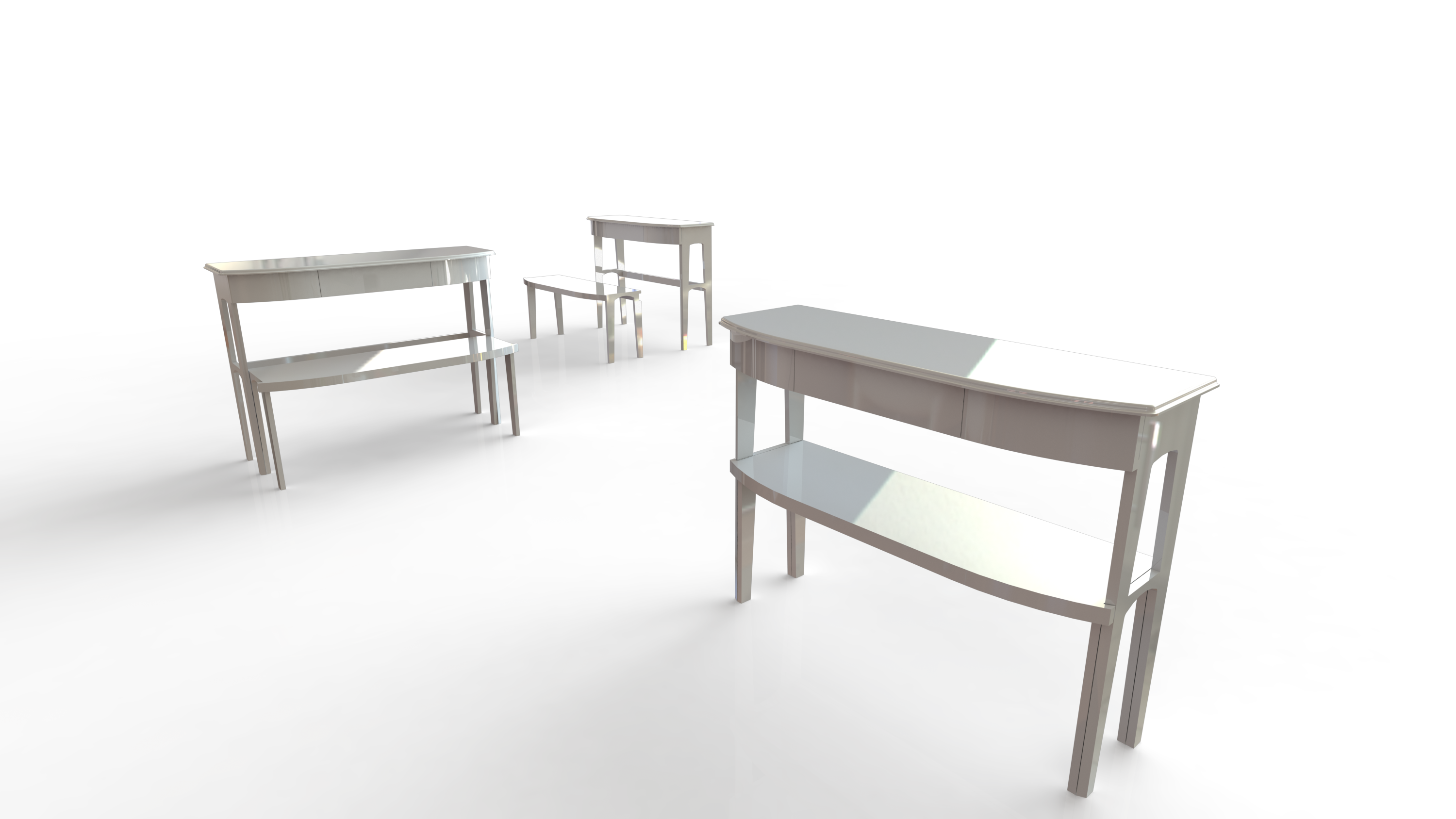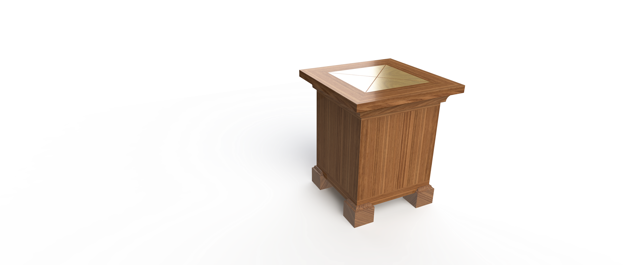 A classic style twin set of end tables in walnut with mahogany inlays.